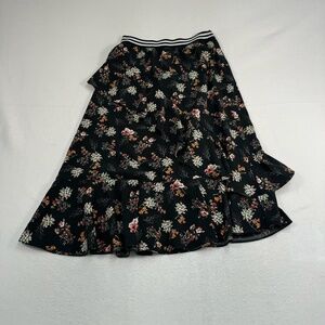Rococo Pull On Floral Layered Midi Skirt Womens Size Large Black