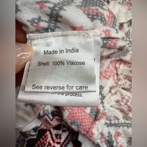 Relaxed fit mini skirt in red, black and ivory aztec folk print. Elastic waistline with drawstring in self fabrication with long beaded tassel closure detail. Tassel in red, black and ivory beads. Drawstring waistline with beaded tassel detail. Embroidered, beaded hemline.