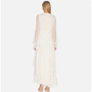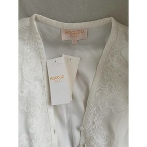 Rococo Sand Chiffon White High Low Dress Lace NWT SIZE XS In an ivory white sand color dress is stunning made with high quality material such as 100% viscose retailing at 489.00 this price is a steal. Kept in a no pet no smoke home.