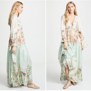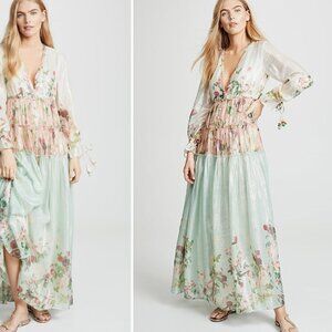 Rococo Sand Dress, Floral Maxi with Sleeves