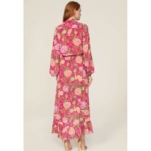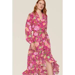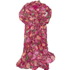 Rococo Sand Dress Womens Small Pink Chloe Wrap Floral Tropical Motif Ruffle
