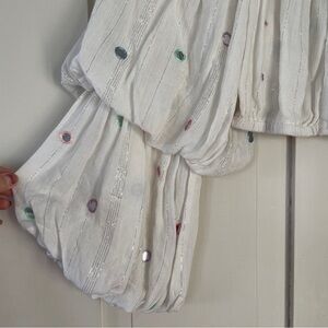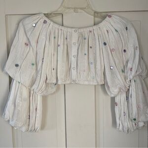 Rococo Sand Embellished Plissé Cropped Top Off White Size XS
