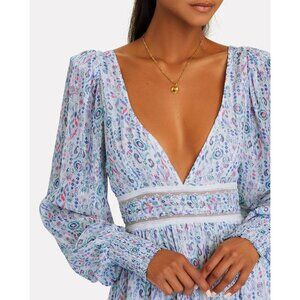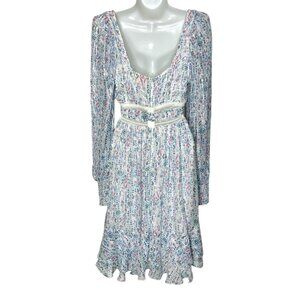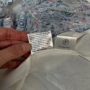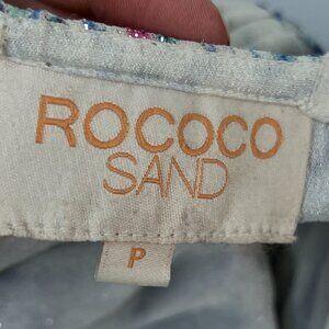 Rococo Sand Floral Lurex Chiffon Mini Dress Blue Multicolor Romantic Petite PP