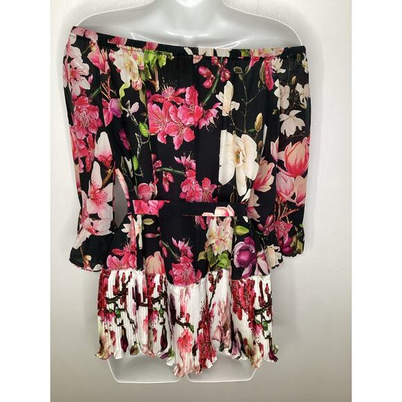 Rococo Sand Floral Silk Romantic Off Shoulder Pleated Blouse w belt Date Top S