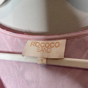 Rococo Sand Hikari Poly Jacquard Georgette Mini Dress Pink Purple Size Small. Excellent used condition. No flaws. Missing belt