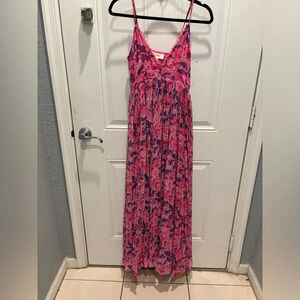 Rococo Sand Lei Floral Polychighone Pleated Maxi Dress in Bubblegum sz S $498