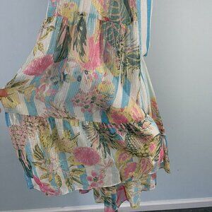 Rococo Sand Lily Drawstring Tassel Tie Floral Mini Dress Bell Sleeves Size Small