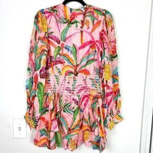 Rococo Sand Rio Short Dress womens small tropical print long sleeve summer beach