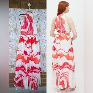 Rococo Sand White & Multicolour Abstract Pleated dress size small