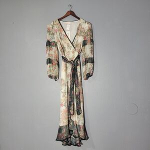 Rococo Sand Womens Long Sleeves Floral Maxi Dress Sz Large.