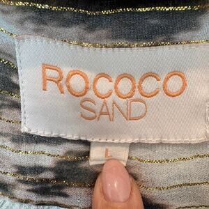 Rococo Sand X Revolve Tie Dye Faux Wrap Metallic Threads Sheer Mini Dress Large