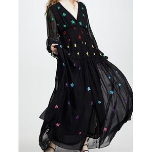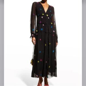 Rococo Sand Etoile Sequined Star Tiered Embellished Ruffles Chiffon Maxi Dress