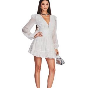 The True Dress is a romantic, long-sleeve take on the little white dress. It features classically feminine details, including a deep v-neckline, ruffles at the shoulder and hems, covered buttons, and ribbon trim. Shown here in White.