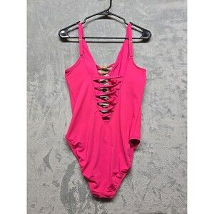 This is a Bleu Rod Beattie swimwear for women in size 10, featuring a beautiful pink color with beaded accents. It is designed with adjustable straps for a customized fit. Perfect for adding a touch of elegance to your beach or poolside look.