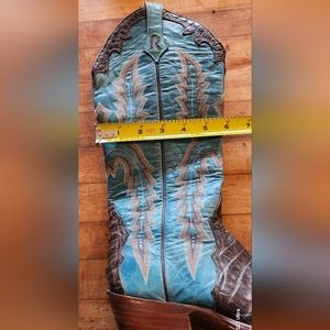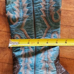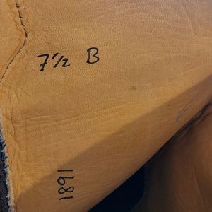 I collect boots and I love these, but they were made for someone with much smaller calves than I have! I love Camen leather with the Turquoise shaft. If I cut them half way down the shaft they would be great, but that would be a sin! They are a 7.5 B with a 14" shaft.