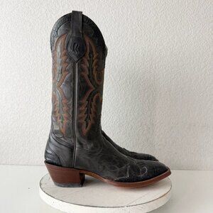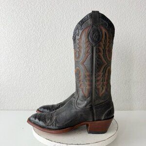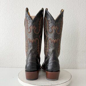 Rod Patrick Mens Cowboy Boots 10 AA Black Caiman & Calf Leather Soles French Toe