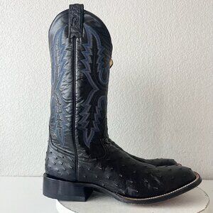 Rod Patrick Mens Cowboy Boots 12AA Black Full Quill Ostrich Leather Western