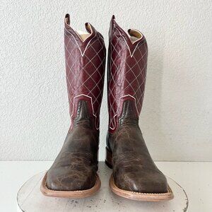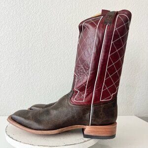 Rod Patrick Mens Cowboy Boots 14.5A Brown Mocha Bison Leather Square Toe Western