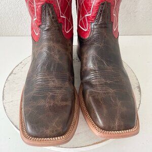 Rod Patrick Mens Cowboy Boots 14.5D Brown Mocha Bison Leather Square Toe Red Top