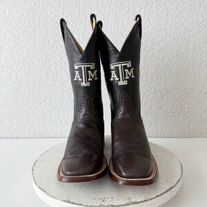 Rod Patrick Mens Cowboy Boots 8.5AA Brown CAYUSE Leather Western Texas A&M Logo