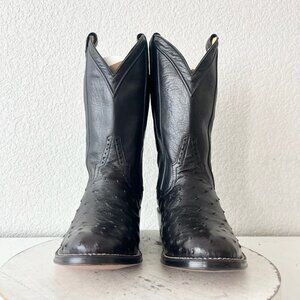Rod Patrick Mens Cowboy Boots 8.5D Black Full Quill Ostrich Western Round Toe