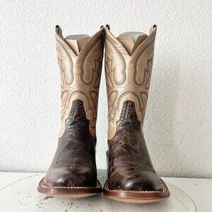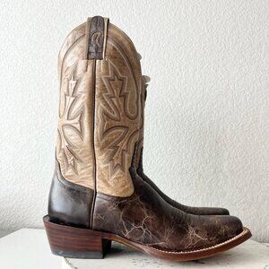 Rod Patrick Mens Cowboy Boots 9.5AA Antique Mocha Bison Brown Western Blunt Toe
