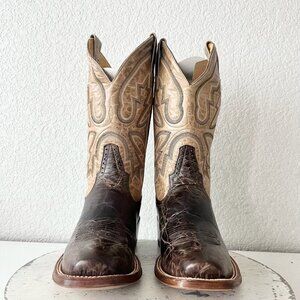 Rod Patrick Mens Cowboy Boots 9.5AA Antique Mocha Bison Brown Western Blunt Toe