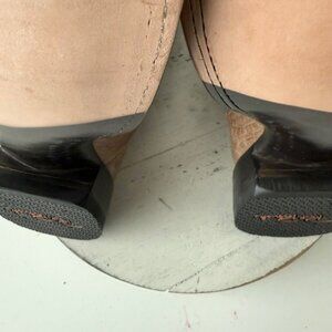 Condition: These are new boots. There is a light mark on the right sole from trying on and the heels look like someone didn't use a boot jack to take off the boots.The leather looks impeccable.