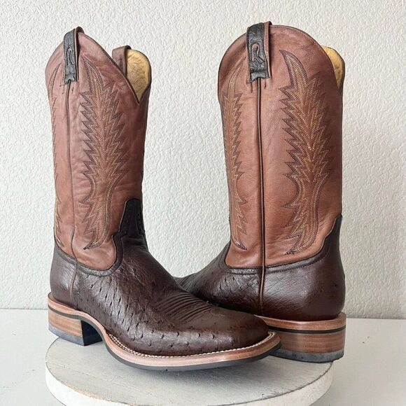 Rod Patrick Mens Cowboy Boots Size 12AA Brown Smooth Ostrich Western Square Toe