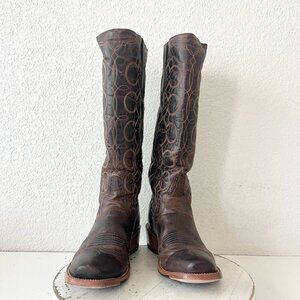 Rod Patrick Womens Cowboy Boots 10.5 A Brown Perro Loco Leather Blunt Toe Tall