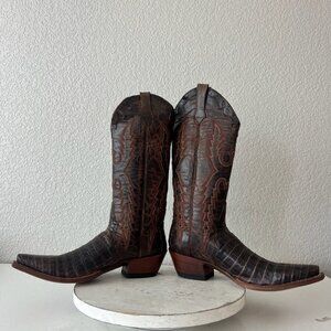 Rod Patrick Womens Cowboy Boots 10AAA Brown Caiman Western Tall Pointed Toe