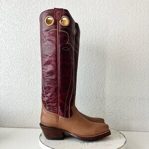 Rod Patrick Womens Knee High Cowboy Boots 6B Brown Red Cowgirl Western Blunt Toe