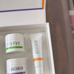Mini mask set by Rodan + Fields. Includes Rejuvenation, Radiance, Rescue, and Clarifying masks. Perfect for skincare routine.