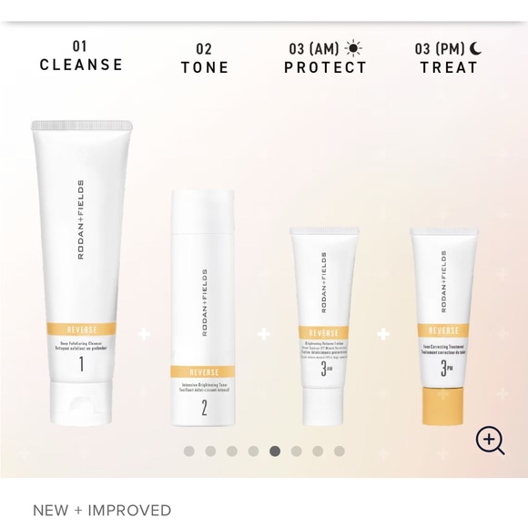 Transform your skincare routine with Rodan + Fields Reverse Collection. Cleanse, tone, protect, and treat for a luminous complexion. New, unopened full regime. Includes exfoliating cleanser, brightening toner, tone correcting treatment and brightening defense lotion spf.