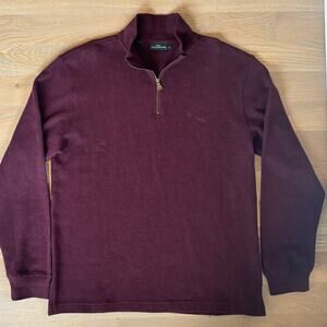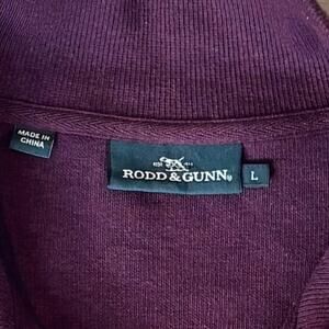 Rodd & Gunn Alton Ave Quarter Zip Sweatshirt Australian Cotton Berry Mens Large. 100% Australian ribbed cotton, brushed for a soft, luxurious feel. Heavy, thick, and cozy. Stitched Pointer dog logo on chest. Deep burgundy/ wine color. Loose, relaxed, baggy fit. Slightly oversized. Excellent condition. Smoke free home. NEXT DAY SHIPPING.