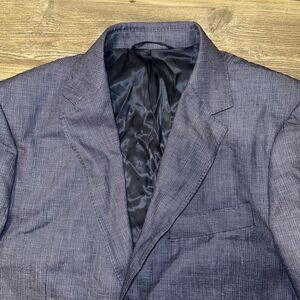 This Rodd & Gunn blazer is a stylish addition to any wardrobe. The chambray blue linen material and solid pattern make it perfect for a casual occasion. The jacket features a button closure, pockets, and is suitable for all seasons.