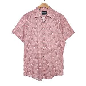 Pre-owned men’s Rodd & Gunn Mclaren Park short sleeve sport fit button up shirt in an all over novelty print. Very lightweight, breathable, all natural, and fun essential for the Summer.