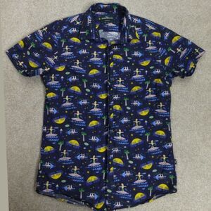 Description: Previously owned and still in good condition. Short Sleeves. Aloha Space graphics all over. Button-Up.
