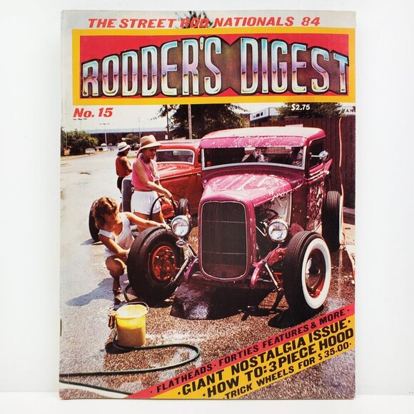 Rodder's Digest magazine #15 (published 1984), sleeved and boarded. Please note light vintage shelf life wear, shown. This is an unsold, unread issue from a now defunct newsstand business in the Washington, D.C. area. Ships safely padded in a secure box :)