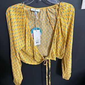 Rode By Target Women's Dainty Lotus Print Wrap Top Yellow/Turquoise Size M NWT