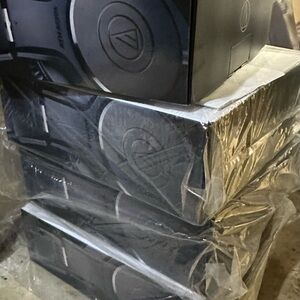 Complete audio equipment bundle featuring a mixer and 4 sets of headphones, 4 microphones, 4 microphone cables, and 4 broadcast arms. All brand new in boxes. Ideal for professional podcasting.