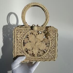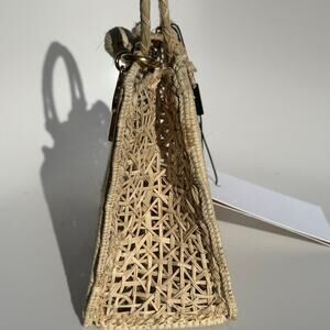 Rodebjer Palm Bag Handwoven Raffia Floral Structured Handbag Natural Canvas NWT