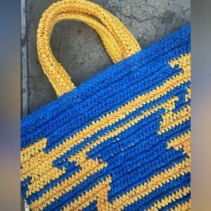 Rodeo Bar Style Rustic Raffia Aztec Tote