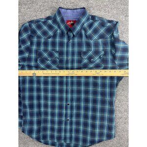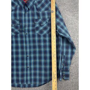 Rodeo Clothing Co Shirt Mens XL Blue Plaid Western Pearl Snap Long Sleeve Cowboy