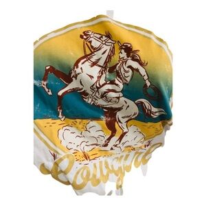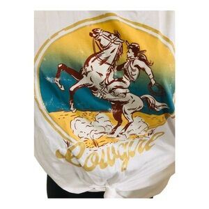 Rodeo Cowgirl gold fringe tassels White Cotton tee shirt size medium new