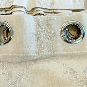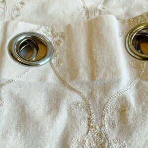 Elevate your space with these beautifully designed curtain panels by Rodeo Home. Crafted from soft, high-quality polyester, they feature a delicate embroidered scroll motif in shimmering thread for a refined, elegant look. The grommet top design allows for easy hanging and smooth gliding.