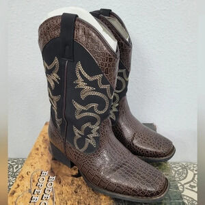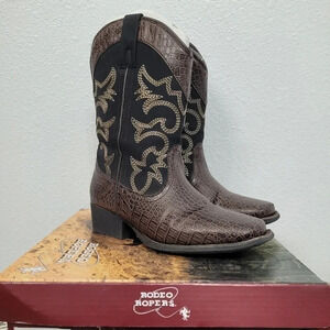 Rodeo Ropers Meadow Boots. Size 4 big kid. In excellent used condition with minor scuffs in the front. Comes with original box. Moc croc style.
