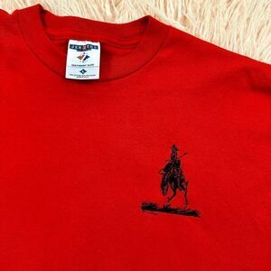 Features: Embroidered cowboy riding a bucking bronco on the left chest.