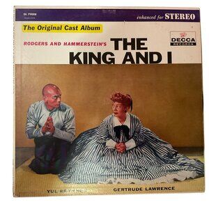 This original cast album features the music from Rodgers and Hammerstein's "The King and I," performed by Yul Brynner and Gertrude Lawrence. Produced by Decca Records, this stereo-enhanced LP is a collector's item for musical theater enthusiasts. The album includes iconic tracks that showcase the talents of its legendary cast.