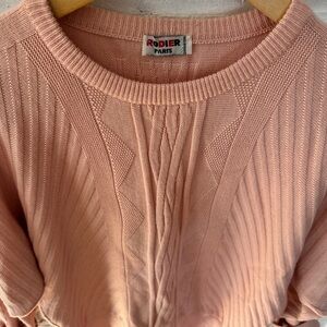 Beautiful vintage Rodier Paris sweater, made in France. Soft pink knit with textured cable and diagonal stitch detailing for a timeless, elegant look. A rare find from this Parisian label.